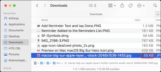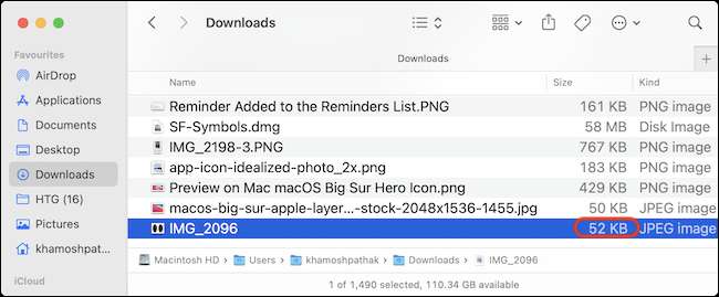 Cuando regrese a la ventana Finder, verá el tamaño del archivo actualizado para la foto.
