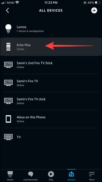 Para comenzar, abra la aplicación Alexa en su teléfono, toque "Dispositivos" en la parte inferior, y toque "Todos los dispositivos" en la parte superior.