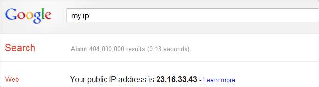 Voit määrittää nykyisen julkinen IP-osoite kirjoittamalla Mikä on minun ip Googleen - tai vain etsi minun ip .