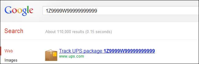 Jos haluat seurata pakettia, voit kirjoittaa UPS-, USPS- tai Fedex-seurantanumeron suoraan Google-hakukenttään. Google linkittää sinut asianmukaiselle pakettiseurantasivulle.
