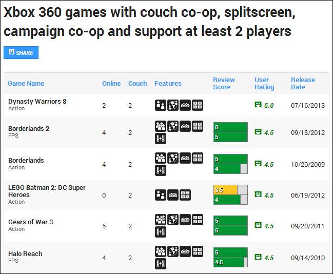 Niin kauan kuin kaikki on toistaiseksi, Co-Optimus-tietokannan todellinen kauneus on se, kuinka helppoa on etsiä uusia moninpelejä vain etsimilläsi ominaisuuksilla. Oletetaan, että ostat Borderlands 2: n ja rakastat sitä niin paljon, että haluaisit muiden First Person Shooters -pelaajien, joilla on samanlainen jaettu kampanja ja yhteistyötila. Liitä kaikki nämä arvot hakusuodattimiin, lajittele luokituksen mukaan ja nauti yksityiskohtaisesta luettelosta peleistä, jotka kannattaa tarkistaa.