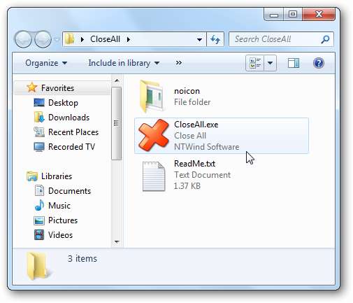 Sulje kaikki Windows NTWind -ohjelmistosta on helppokäyttöinen apuohjelma, joka ei vaadi asennusta, ja lopettaa kaikki ohjelmat yhdellä napsautuksella. Yksinkertaisesti lataa ja pura zip-tiedosto, ja kun avaat sen, näet sen suorittavat tiedostot.