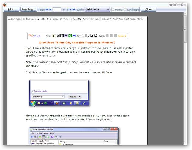 Jos päätät tulostaa artikkelin, koko asia siirtyy selaimesi vasemmalle puolelle, kun napsautat Lisää-valikossa Tulosta.