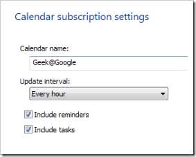 Tärkein asia, jonka haluat valita tältä näytöltä, on päivitysväli, joka pitää kalenterin synkronoituna automaattisesti. Valitsin myös ystävällisemmän nimen.