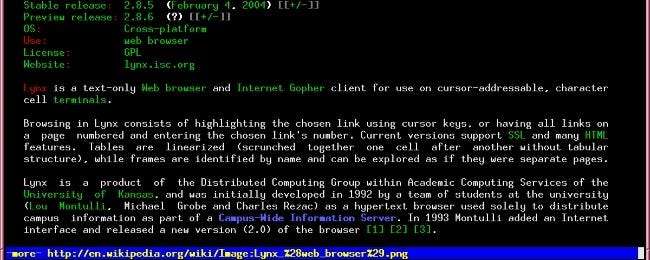 Lynx-selaimen kuvakaappaus kohteliaisuus Wikipedia .