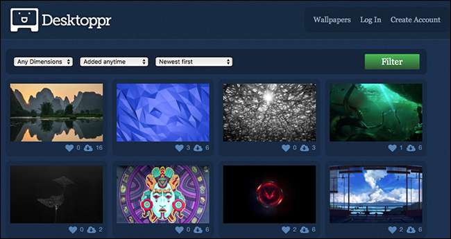 Etkö ole varma, haluatko oman sovelluksen vain löytääksesi hienoja taustakuvia? Desktoppr on taustakuvien online-tietokanta, jonka voit asettaa synkronoimaan Dropboxin kanssa. Rekisteröi vain tili ja aloita sitten tietokannan selaaminen.