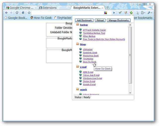 Haluatko helpon tavan käyttää, lisätä ja hallita Google-kirjanmerkkitiliäsi Chromessa? Nyt voit tehdä sen BoogleMarks-laajennuksella.