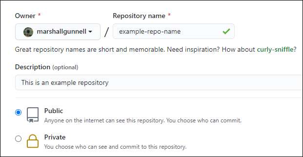 Kun olet antanut Repo, antaa sille lyhyt kuvaus ja valita haluatko tehdä repo julkinen tai yksityinen.