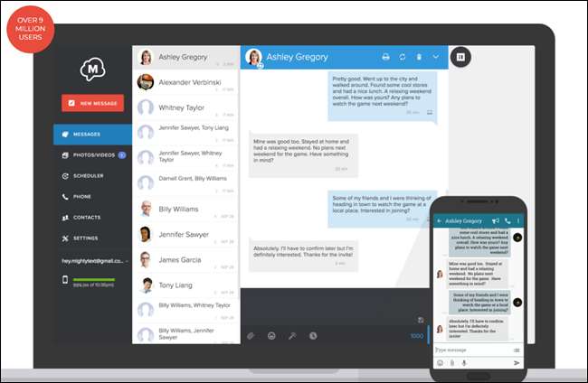 Toisin kuin Pushbullet, MightyText aloitti elämänsä vain tapana lähettää viestejä tietokoneeltasi, mutta se on siitä lähtien kasvanut. Itse asiassa se voi tehdä paljon samoja asioita kuin Pushbullet, kuten ilmoitusten peilaus.