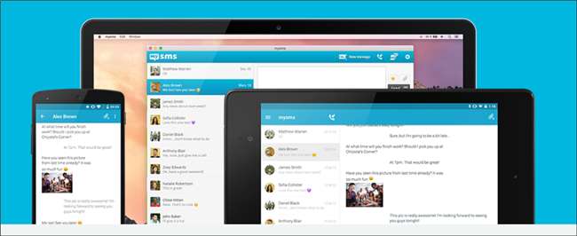 Meillä on pitkään ollut mahdollisuus lähettää tekstiviestejä tietokoneelta kolmansien osapuolien sovelluksilla, kuten Pushbullet ja MightyText. Google on nyt vihdoin lisännyt tämän toiminnon omaan Android-tekstiviestisovellus . Mutta miten se vertaa työkaluja, joita meillä on ollut niin kauan?
