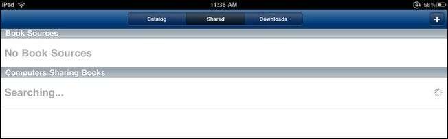 Napsauta käyttöliittymän alaosassa olevaa "Hae kirjoja" -kuvaketta. Stanza etsii lähiverkostasi ja selvittää, onko tietokone jakamassa kirjoja. Jos se ei löydä tietokonettasi, se ei ole iso juttu. Lisäämme kirjapalvelimesi yksityisen ja julkisen kasvot manuaalisesti.