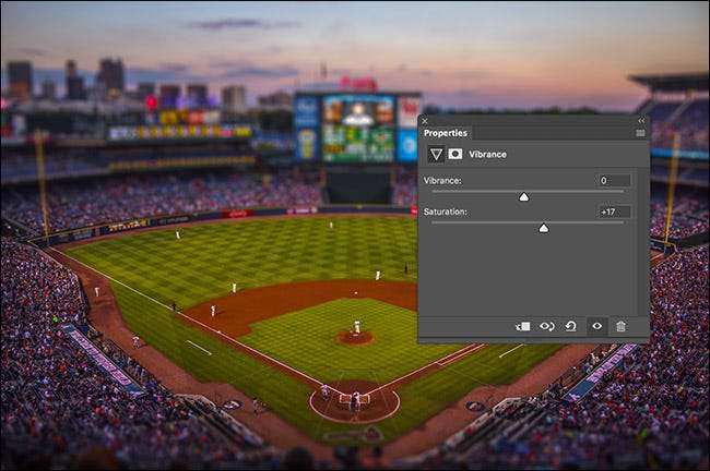 Valitse Taso> Uusi säätötaso> Värinä ja vedä Värikylläisyys-liukusäädintä oikealle. Noin 17 näyttää hyvältä käytetylle kuvalle, mutta mene mitä tahansa sinulle sopivaksi.