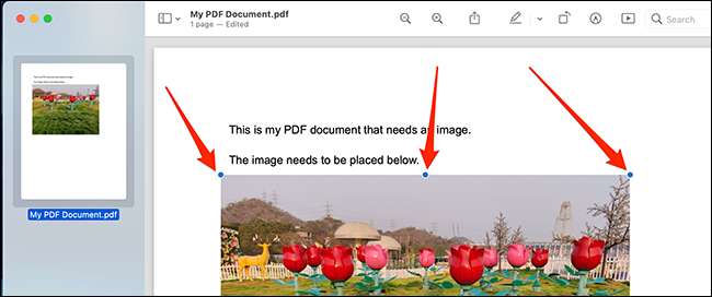 Nyt käytä käsittelijät ympärille liitetyn kuvan asemoida ja kokoa se PDF-dokumentin.