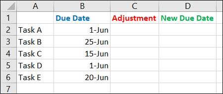 Tässä esimerkissä käytämme eräpäivät, ja meillä on sarakkeet perustettu järjestyksessä edellä kuvatut: Eräpäivä, säätö ja New eräpäivänä.