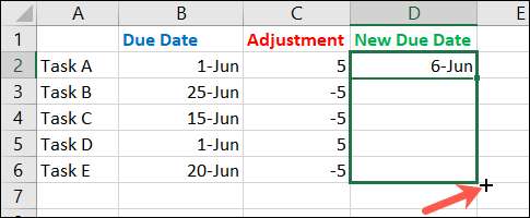 Nyt sinulla on kaavat uudessa päivämäärä sarakkeen, voit muuttaa päivien määrä säädön sarakkeessa aina tarvittaessa.