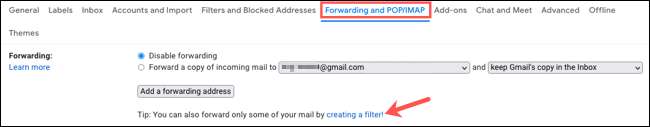 Jos olet juuri perustanut edelleenlähetysosoitteen Edelleenlähetys ja POP / IMAP -välilehti, voit myös löytää sen klikkaamalla ”luominen suodatin.”