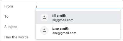 Ehkä tämä Gmail-tili on yrityksille, mutta saat usein henkilökohtaisia sähköposteja. Voit kirjoittaa sähköpostiosoitteet ystävien ja perheenjäsenten Vuodesta kenttään tai aloittaa kirjoittamisen ja valita ehdotus. Sitten lähettää viestejä henkilökohtainen tili.