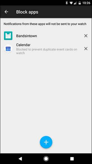 Tässä osiossa estät sovelluksia lähettämästä ilmoituksia kelloosi. Napsauta plusmerkkiä alareunassa.