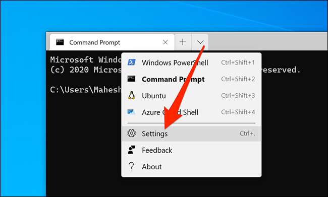Napsauta Windowsin päätelaitteen yläosassa olevaa alas-arrow -kuvaketta ja valitse sitten "Asetukset".