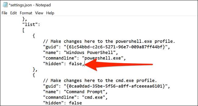 Jos haluat palata alkuperäiseen oletusluetteloon Windows-terminaalissa, sinun on vain poistettava äskettäin lisätty koodi Asetukset-tiedostosta.