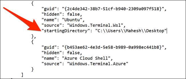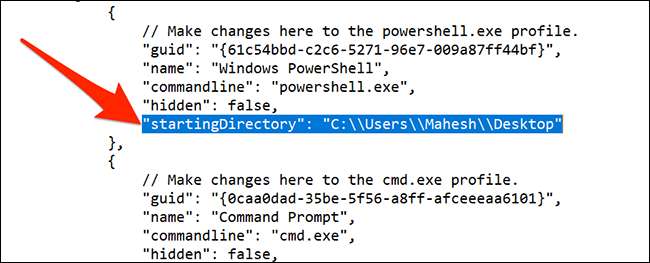 "StartDirectory": "C: \\ Käyttäjät \\ Käyttäjätunnus \\ Desktop"