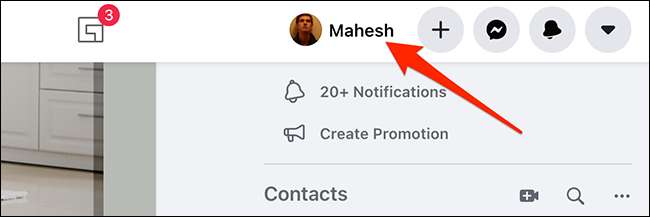 Kun Facebook kuormia, valitse profiilisi kuvaketta oikeassa yläkulmassa sivuston.