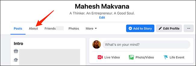 Profiilisivullasi, kielekkeistä palkkia nimesi, valitse ”Tietoja” välilehti.