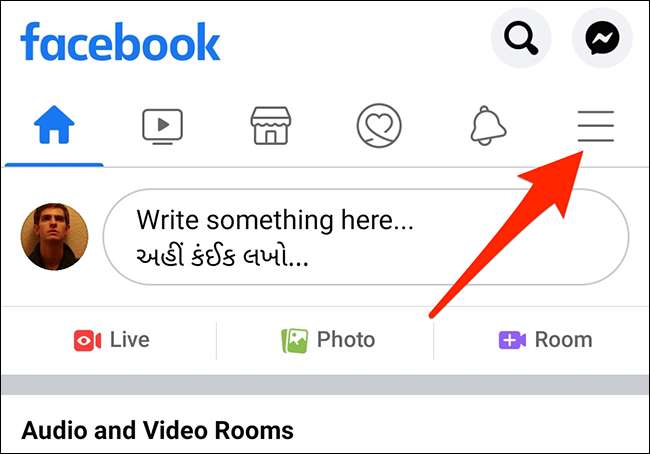 Facebook-sovellus, että oikeassa yläkulmassa, kosketa kolme horisontaalista riviä.