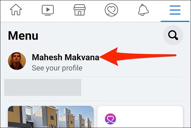Facebook avaa ”Valikko” -näyttö. Täällä napauttamalla profiilisi yläosassa.