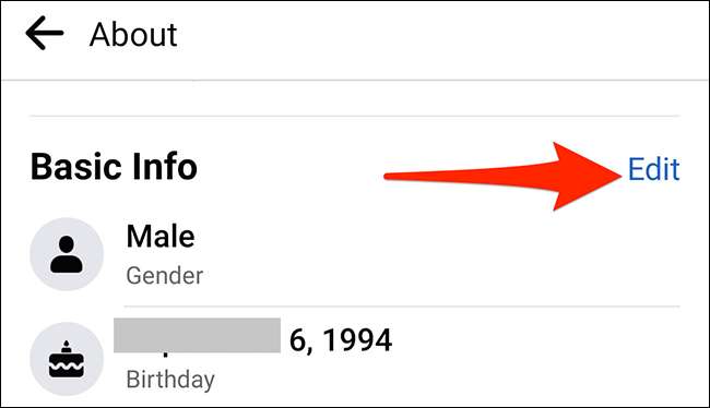 Selaa alaspäin ”Tietoja” näytön ”Basic Info” -osiossa. Sitten kosketa ”Muokkaa” vieressä ”Basic Info.”