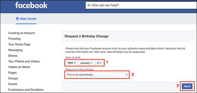 Jos Facebook on estänyt sinua muuttamasta syntymäpäivä yrittämään tehdä niin liian monta kertaa, siellä on vielä tapa pyytää, että sivusto muuttaa syntymäpäivä.