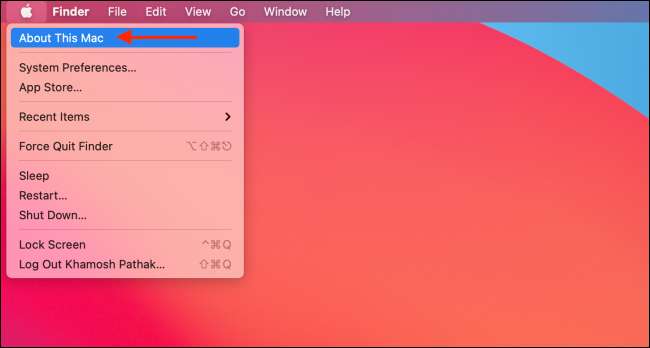Napsauta Mac-tietokoneessa Apple-kuvaketta valikkorivin vasemmassa yläkulmassa ja valitse sitten "Tietoja tästä Mac" -vaihtoehdosta.
