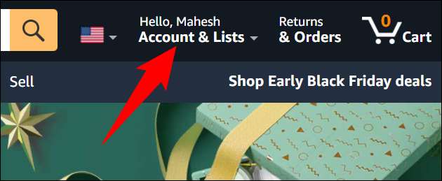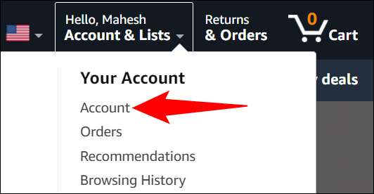 Vuonna Amazonin oikeassa yläkulmassa, vie hiiri ”Tili & amp; Listoja”menu nähdä avautuvasta valikosta.
