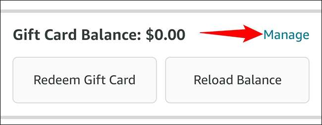 Voit tarkastella lahjakortteja, jotka olet lisännyt tilillesi toistaiseksi, sitten vieressä ”Lahjakortti Balance,” kosketa ”Hallitse” vaihtoehto.
