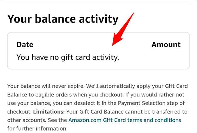 Sivulla, joka avautuu aivan ”Lahja kortin saldo,” näet lahjakortin saldo tällä hetkellä käytettävissä tililläsi.