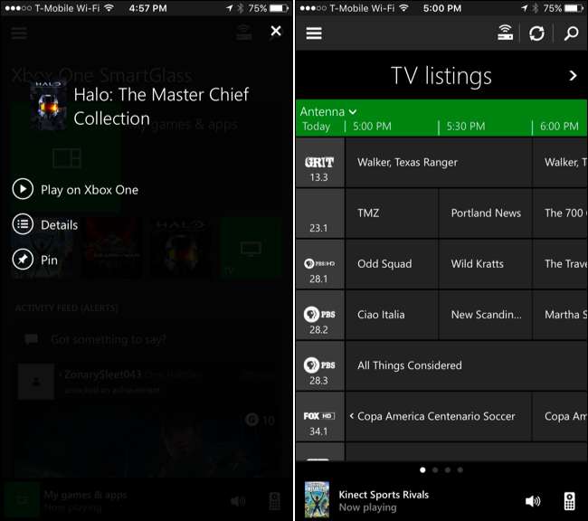 Microsoftin Xbox SmartGlass -sovelluksen avulla voit käynnistää pelejä, selata TV-luetteloita ja hallita sovelluksia Xbox Onella. Voit jopa käyttää sitä suoratoistamaan televisiota Xbox Onesta puhelimeesi. Se on saatavana Android-puhelimille, iPhoneille, Windows 10 ja 8 ja jopa Windows-puhelimille.