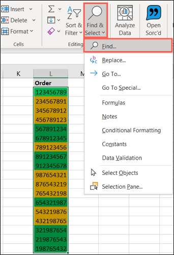 Valitse solut haluat työskennellä ja pää nyt Home. Kun muokkaus osassa nauha, klikkaa ”Etsi & amp; Valitse”ja valitse’Etsi’.