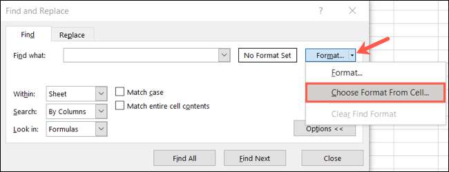 tuntematon muotoilu : Jos et ole varma tarkasta värin tai käyttää useita muodossa muodoissa, kuten täyttövärin, raja, ja fontin värin, voit ottaa eri reittiä. Napsauta nuolta Muoto-painiketta ja valitse ”Valitse Muoto solusta.”