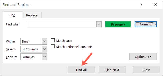 Jommallakummalla edellä kaksi tapaa tehdä muodossa etsit, sinun pitäisi seuraavaksi tarkistaa esikatselun. Jos se näyttää oikein, klikkaa ”Etsi kaikki” alareunassa ikkunan.