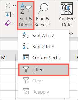 Nyt on aika Käytä suodatinta ominaisuus soluillenne . Valitse sarakkeen otsikkoa ja mene nyt Home. Klikkaa ”Lajittele & amp; Suodatin”ja valitse’suodatin.’