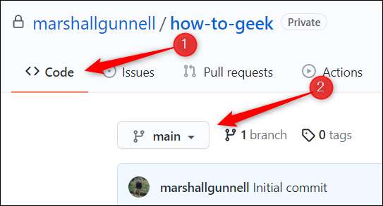 Kun olet käsiksi arkistoon, voit automaattisesti mukana ”Code” välilehti. Hieman alle tämän, napsauta painiketta, jossa lukee ”Main.”
