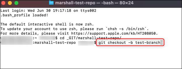 Kun olet oikeassa hakemistossa, voit luoda uusi haara. Suorita tämä komento: