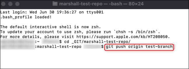 Uusi haara on nyt luotu, mutta se on saatavilla vain omalla koneellasi. Sinun täytyy työntää sen alkuperää arkistoon ajamalla komento: