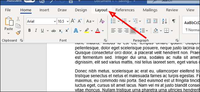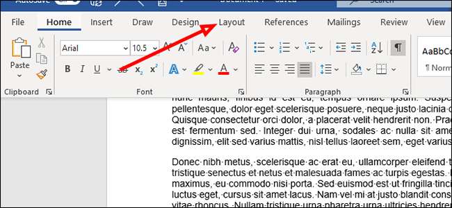Napsauta "Layout" -välilehteä sanan ikkunan yläosassa.