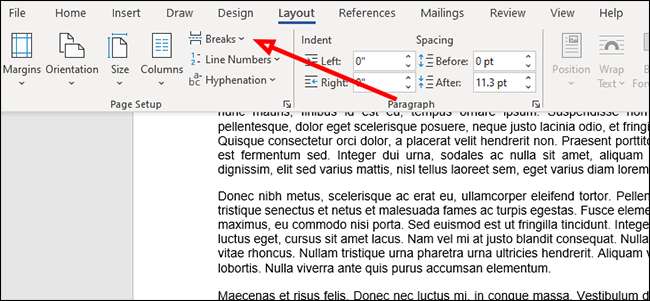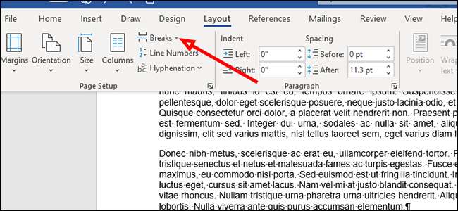 Avaa "Sivu ja osion taukot" -valikon napsauttamalla "taukoja".