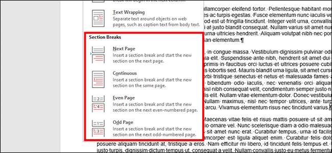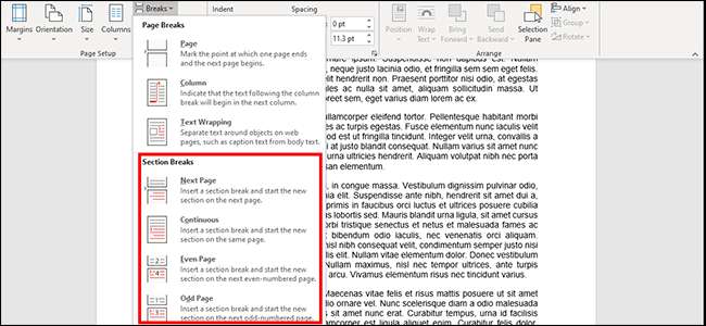 Valitse uusi tyyppinen osio, jonka haluat klikkaamalla mitä tahansa vaihtoehtoa. Se muuttaa automaattisesti osan tauon tyyppiä sen perusteella, mitä valitset.