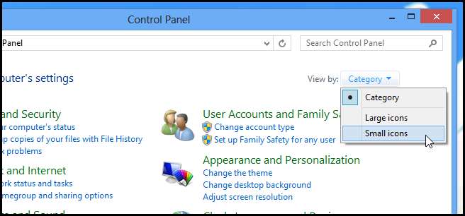 Siirry sitten oletusluokanäkymästä Pienet kuvakkeet -näkymään.
