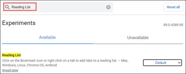 Seuraavaksi kirjoita "lukuluettelo" hakukenttään. Tämä tuo esiin lipun, joka on yksinkertaisesti nimeltään "lukuluettelo".