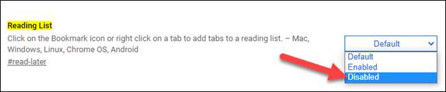Jos käytät vanhempaa Google Chromen rakennusta, ei ole virallista tapaa piilottaa lukulista-ominaisuus. Sen sijaan käytämme kromia " lippu "Kytke se pois päältä. Vaikka se ei ole ihanteellinen, se toimii, ja se on helppo tehdä.