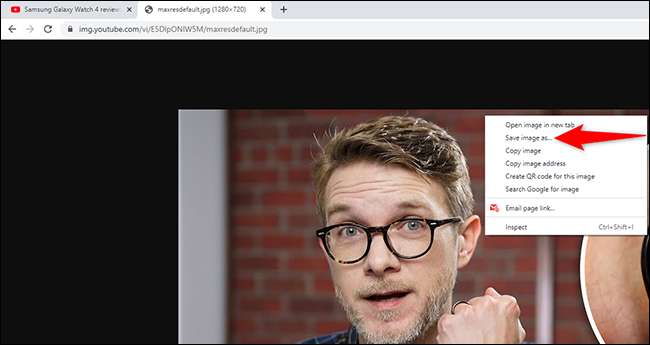 Uudessa välilehdellä näet videon pikkukuvan suurikokoisen version. Jos haluat tallentaa tämän pikkukuvaan laitteeseen, napsauta sitä hiiren kakkospainikkeella ja valitse Tallenna kuva nimellä.